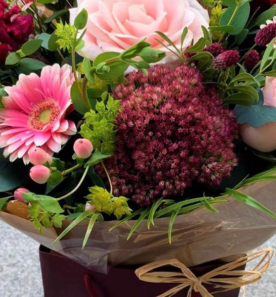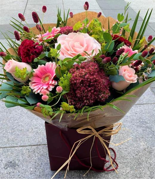 let our florist choose for you .Each handmade bouquet is created by our skilled florist using the best seasonal blooms available to created a unique bouquet just for you .Gift wrapped in water with gift bag .every bouquet is different you choose the colour theme and leave the rest to us .