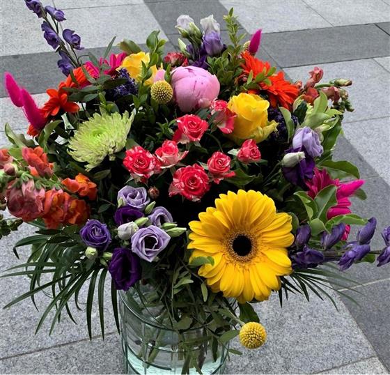 The vibrant bouquet let our florist choose for you .Each handmade bouquet is created by our skilled florist using the best seasonal blooms available to created a uniquely vibrant and colorful bouquet just for you .Gift wrapped in water with gift box